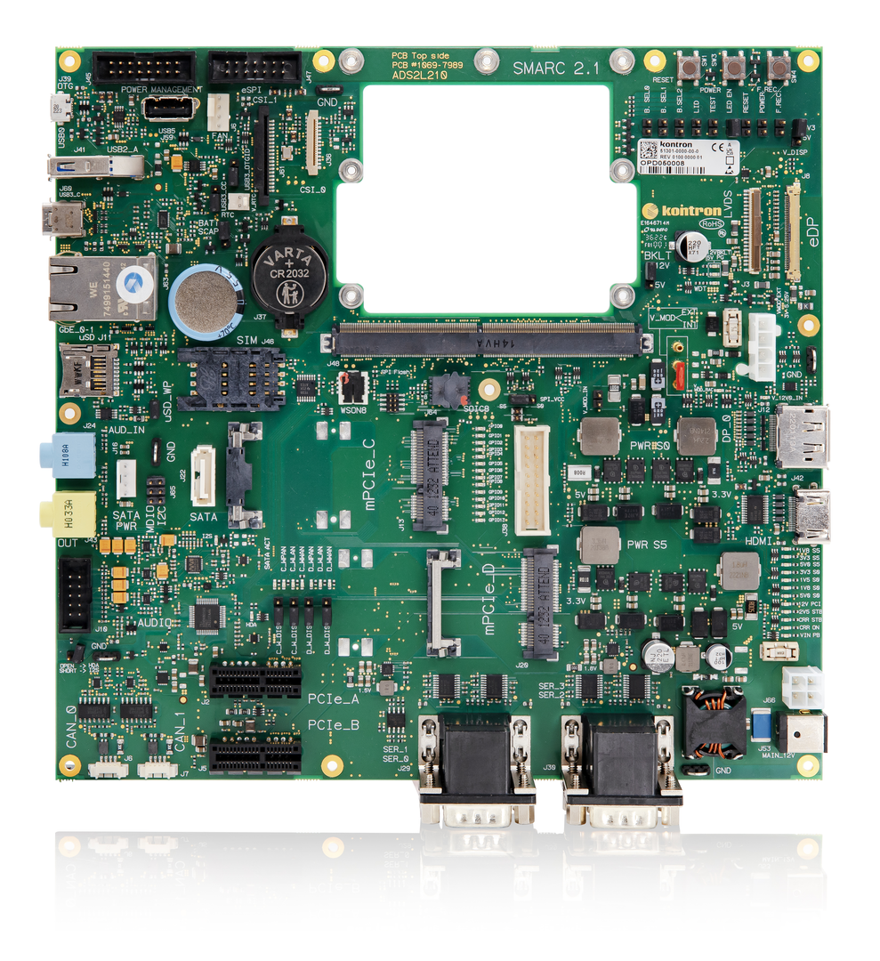 The SMARC Evaluation carrier 2.1 is designed to allow embedded application developers to get up and running quickly on the SMARC modular platform, giving them a head start on the total system design. Simply select the SMARC module best suited for your application needs, install the module and you are ready to get started.